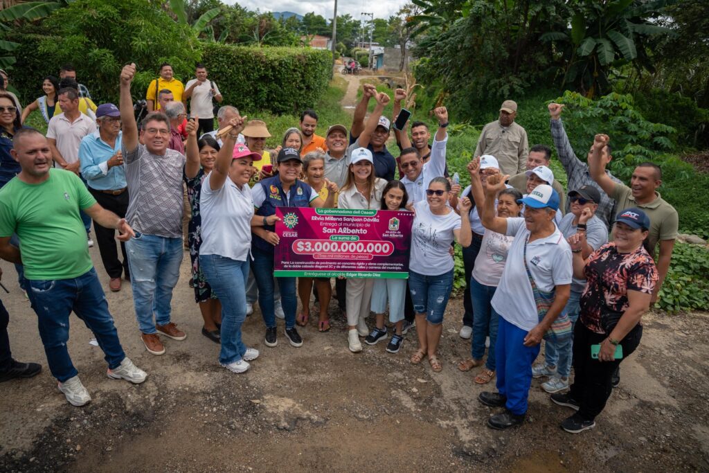 En San Alberto, Sanjuan entregó un cheque por $3.000 millones al alcalde Edgar Ricardo Díaz para pavimentar 1.000 metros de vías urbanas y reforzar el sistema pluvial, obra que asciende a más de $3.300 millones con aporte del municipio. Además, inauguró la nueva sede del Instituto Departamental de Tránsito del Cesar, que acercará los servicios de movilidad a toda la zona sur.